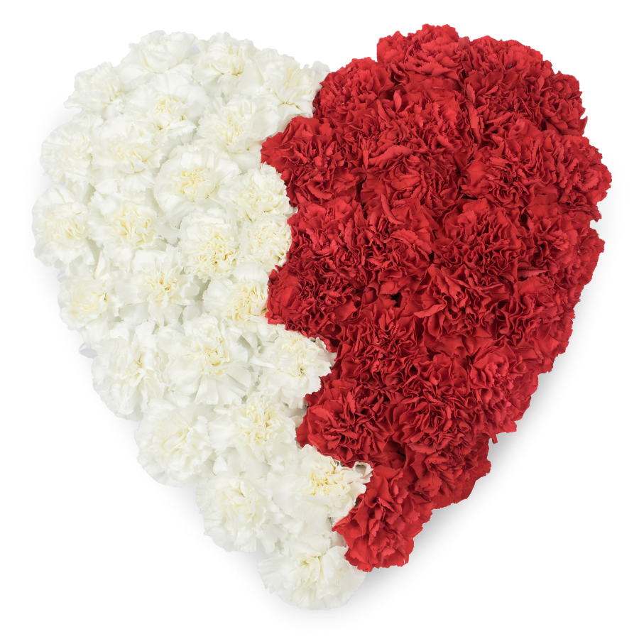 Show your compassion with our Graceful White & Red Carnation Bouquet, artfully designed to offer solace and beauty. This exquisite arrangement blends pure white and rich red carnations, symbolizing peace and love.